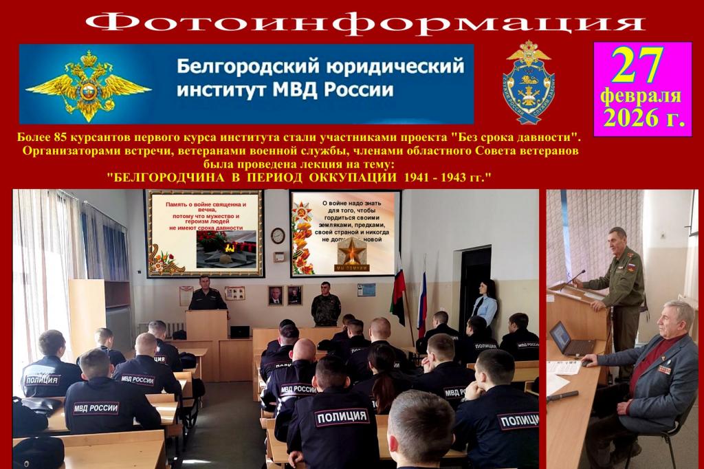Более 100 курсантов юридического института МВД России стали участниками проекта "Без срока давности"