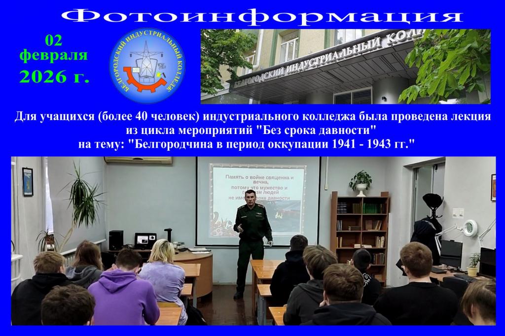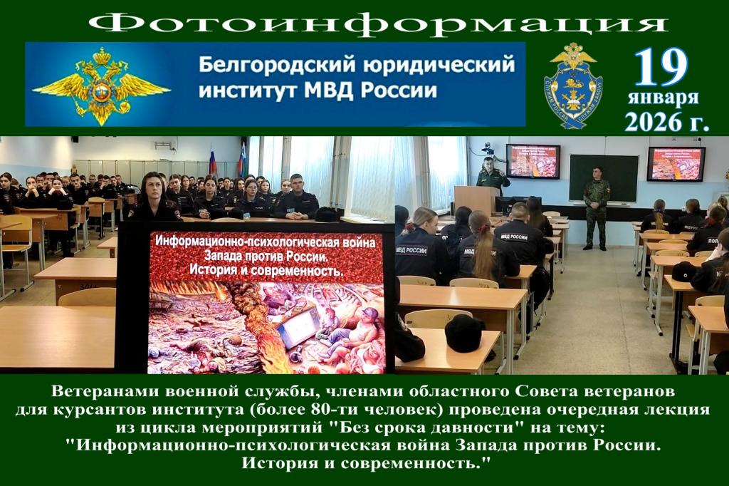В этот раз проведена лекция для курсантов Белгородского юридического института МВД России